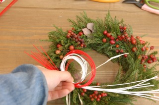 さて、クリスマスリースの教室に来ていただいた方には、そろそろお正月用への変身が必要ですね^^やり方についてお問い合わせがあったので、少し紹介してみます。