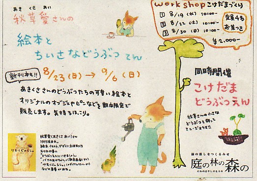 今回は秋草さんの新刊を含めたいくつかの絵本と、オリジナルでつくってらっしゃるかわいいグッズたちがやってきます。