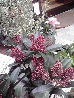 もともと日本原産の「シキミ」がヨーロッパで改良されたものとあって、寒さにつよく日陰OKでとても育てやすいのも魅力です。このお花のようなものが春まで落ちずに彩りを添えてくれます。