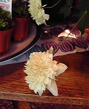 花が落ちたので、つり銭入れにいけました。ちょうどよいのがこれしかなかったのです。