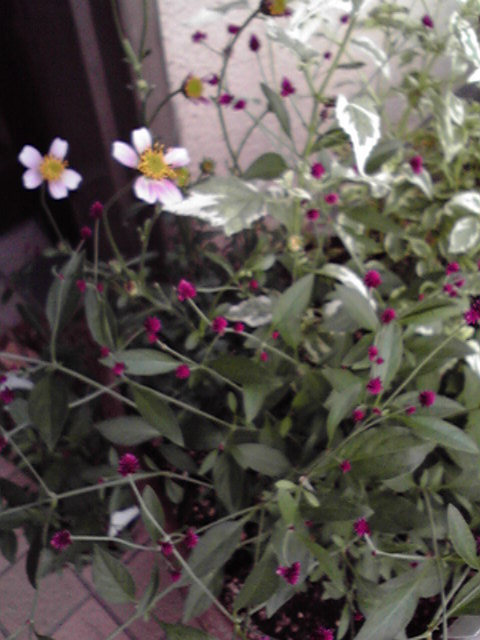 人気の千日小坊と、ピンクのウィンターコスモス。