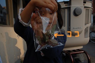 やさしいマイちゃんとお母さんが野原に逃がしてくれるというので、袋にいれてお渡ししました。