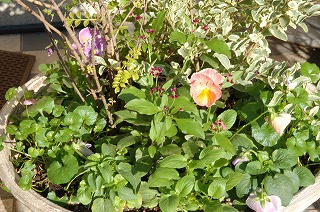 お客様のお手持ちの鉢を秋の花にチェンジ。やさしい花色を心がけました。