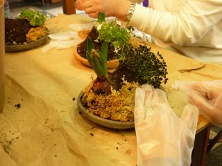 今回の「早春の風景植え」は、鉢でなくお皿に植え込みます。