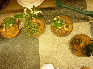 土がこぼれるのを防ぐため、「水苔」という園芸用の材料を使いました。