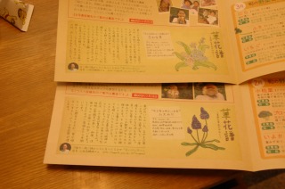 1.2.3月号と今回が三回目ですが、毎回友人でもある大江の郷のUさんに何度もダメ出しをされながら(笑)文章と絵を書いています。そのお花について考えたり絵を描くのはほんとうに楽しいのですが、文章の内容を損なわず、きまった字数におさめる、というのはなかなかタイヘンなものですね。毎回あたまをひねっておりますが、文章にはそれがでないように自然にわかりやすく、と心がけております。