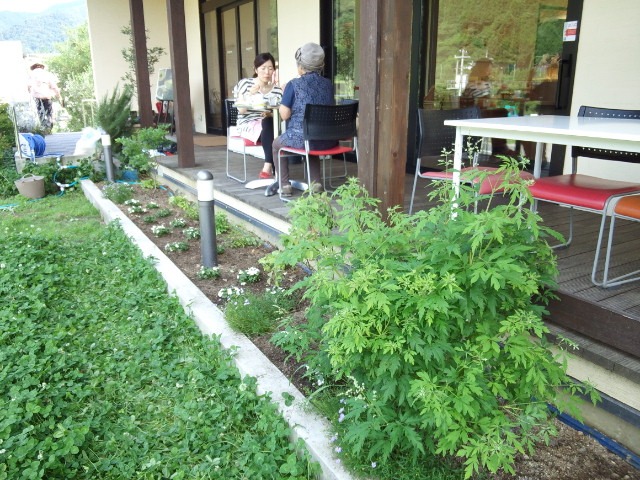 入り口の花壇にはいろんな種類のお花を。来てくれるお客様に楽しんで欲しいというご要望なのです。珍しいものもあるので、ユックリ見て、楽しんでもらえるように。