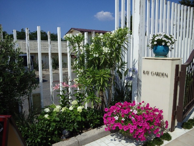 帰りにレイガーデンに寄りました。先日植えたお花が花盛りでした。お庭、素敵になってますよ^^。
