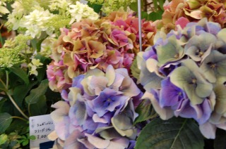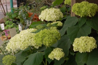 あじさいですが、ノリウツギ科で、あじさいとは少し性質が違い、日向を好みます。秋色あじさいにもなりやすく、晩秋まで花をつけておくことができます。