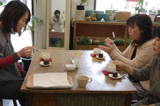 お茶タイムは、ブラウニーとチャイ。2Fのバードネストさんのてづくりです。育て方などの話でもりあがりました^^