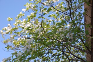 いいお天気。向かいのハナミズキがきれいに咲いています。