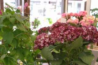 すてきな色のアジサイが入荷しました。私もはじめてみる色。