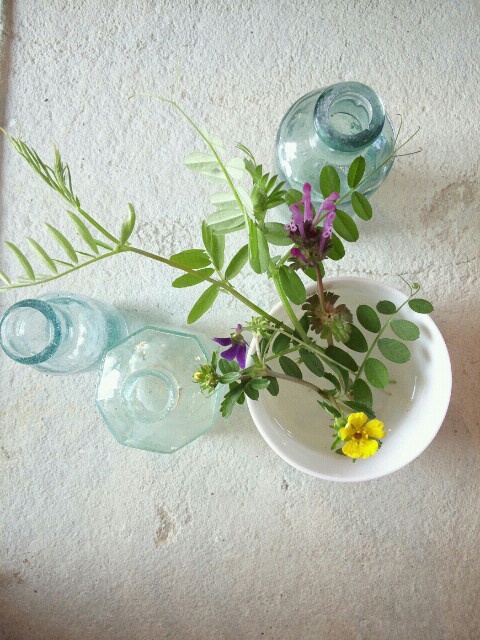 道ばたに咲く小さな小花をあつめて、いけて楽しみます。