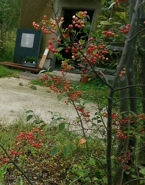 赤い実がかなり色づいた、セイヨウカマツカ。
