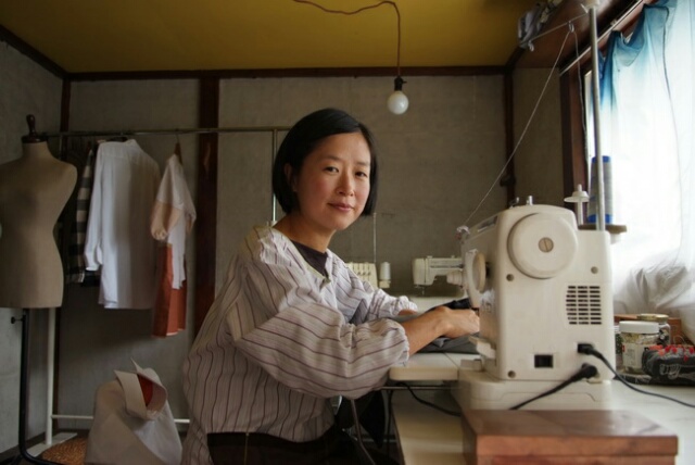 ミシンの前の山口さん。