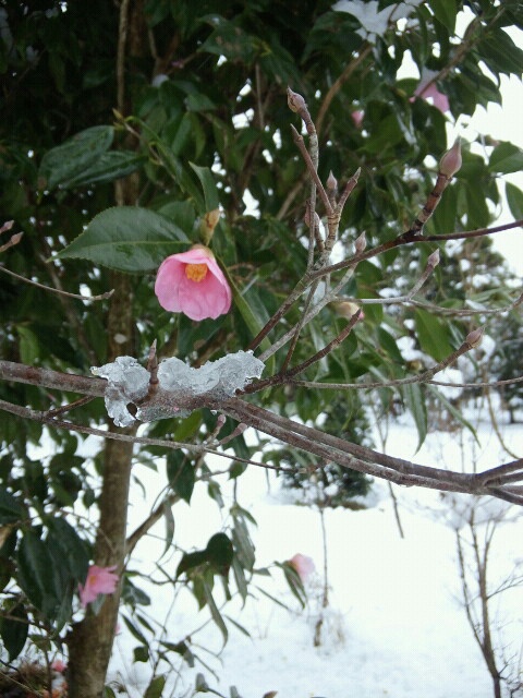 大山町の小原さんのところに撮影用の椿をもらいにいったときは雪でした。