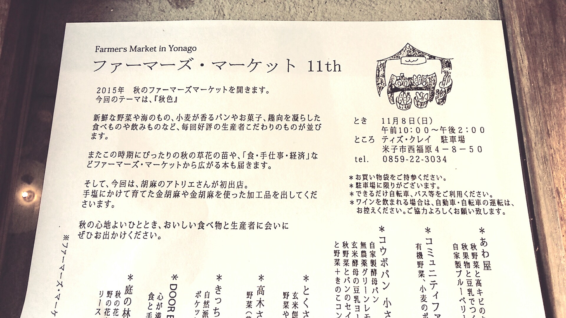 ※恒例 秋のファーマーズマーケットに出店します!