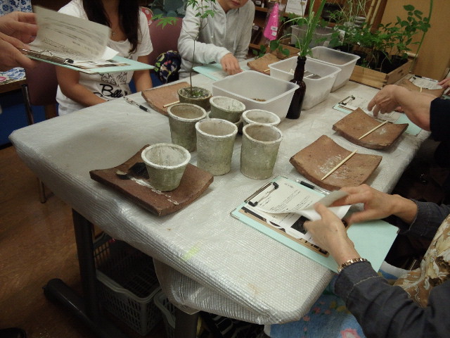 せっかく作ってもらうので、長く楽しんでもらいたいなあと思い、つくるまえに育て方についてお話しました。植物の身になって手入れしてあげること、そのためには自生しているところの環境を知ることなどをお話しました。