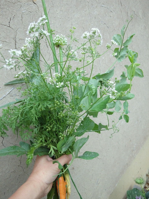 マーケットに出店されている、高木さん、森藤さんより野菜やハーブのお花や、葉っぱを