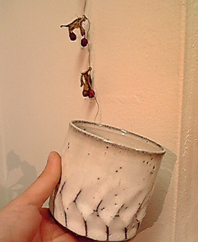和洋折衷、どちらにもつかえるデザインです。シンプルですっきりしているけど釉薬の柔らかさからかきつい印象をあたえません。基本的にはフリーカップなので、お花を飾り終わったあとはお茶や珈琲をいれるマイカップにどうぞ。ミルクティーなんかも似合いそうです。(うつわに直接花の水が触れないようにしてからお花を活けていますからご安心ください)