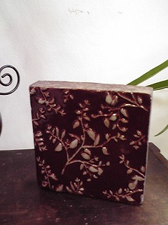 植物模様のタイル。壁かけにもできるフック穴つき。