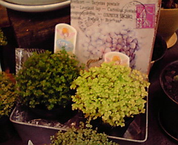 ちいさな葉、ソレイロリアをアンティーク柄の缶にいれてみました。