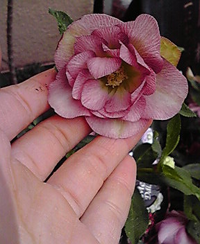 クリスマスローズの八重ピンク。花粉症などどこふく風。